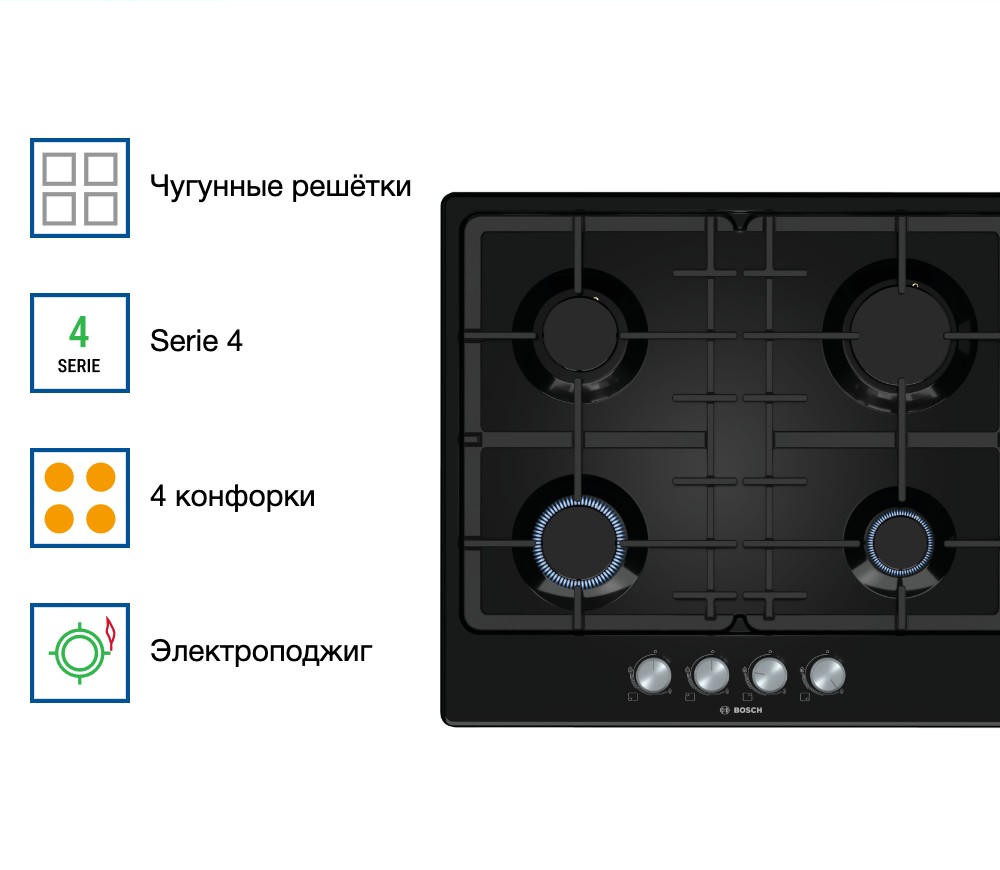 Варочная панель Bosch PGP6B6O93R — это стильное и функциональное дополнение к вашей кухне. Ее черная поверхность из эмалированной стали придает устройству элегантный и современный вид, который гармонично впишется в любой интерьер. Прочные чугунные решетки не только обеспечивают устойчивость посуды, но и добавляют изысканности общему дизайну. Устройство принадлежит к серии Serie | 4, что подчеркивает его надежность и продуманность в деталях.