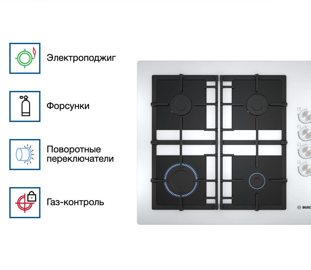 Невероятно удобная и функциональная варочная панель! Четыре конфорки с разной мощностью позволяют готовить разнообразные блюда одновременно, а автоматический электроподжиг и газ-контроль обеспечивают безопасность использования. Материалы поверхности и решеток - закаленное стекло и чугун - гарантируют долговечность и простоту ухода.