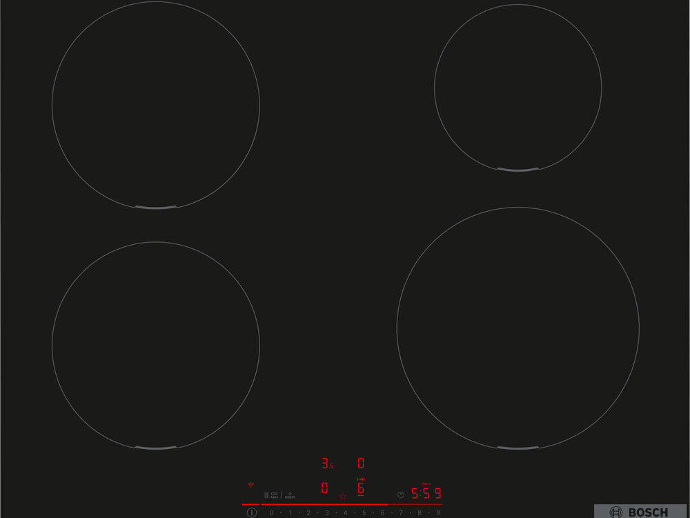 Индукционная варочная панель Bosch PIE631HB1E - современное решение для вашей кухни. Модель оснащена четырьмя конфорками, что позволяет одновременно готовить несколько блюд. Уникальная черная поверхность панели придает ей элегантный и стильный вид. Сенсорное управление и TFT-дисплей обеспечивают удобство и простоту использования. Функция распознавания посуды автоматически определяет размер и положение посуды на панели, что позволяет эффективно использовать энергию.