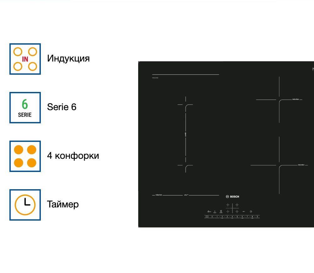 Варочная панель Bosch PVS611FC5Z оснащена функцией ReStart при непроизвольном выключении устройства, настройки восстановятся при следующем запуске. CombiZone позволяет объединить две конфорки в одну и вы можете готовить в посуде нестандартных размеров. PerfectFry отслеживает уровень нагрева и предотвращает пригорание блюда.
