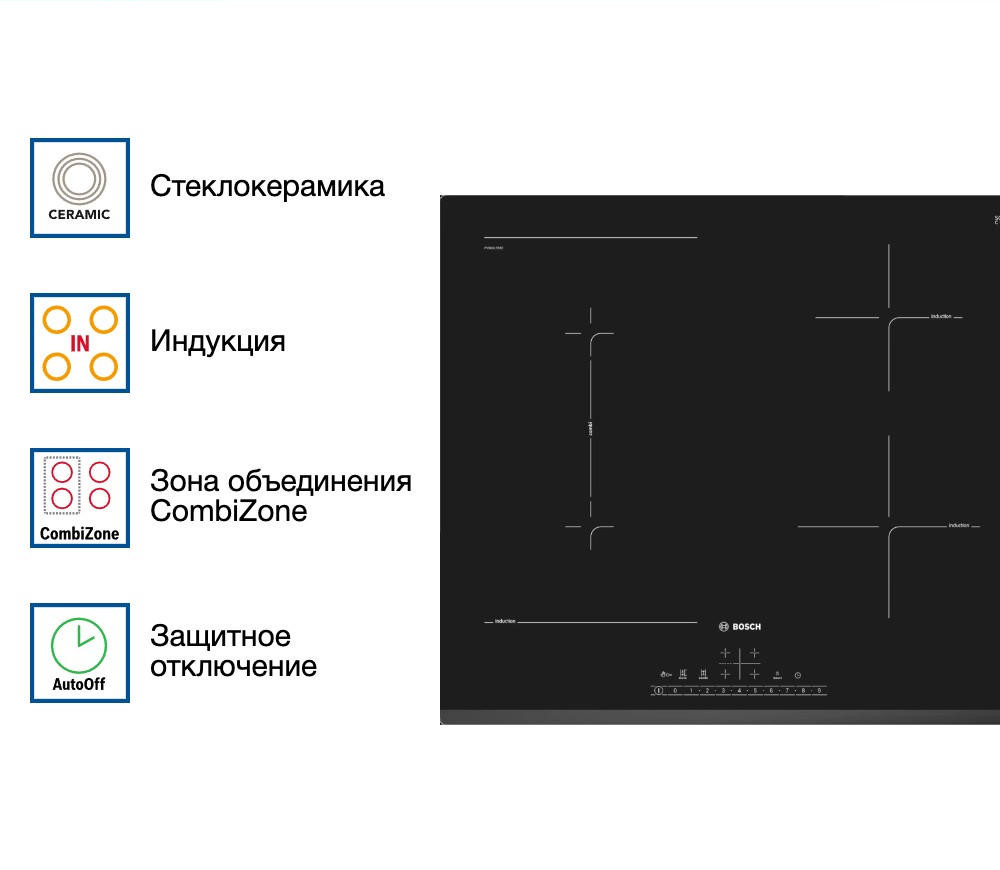 Варочная панель Bosch PVS631FB5E оснащена функцией PowerBoost, она повышает мощность нагрева до 50%, вы можете быстрее вскипятить воду. Таймер оснащен технологией отключения для каждой конфорки, можно выставить время для готовки. При выключении устройства, ваши настройки восстановятся при следующем запуске.