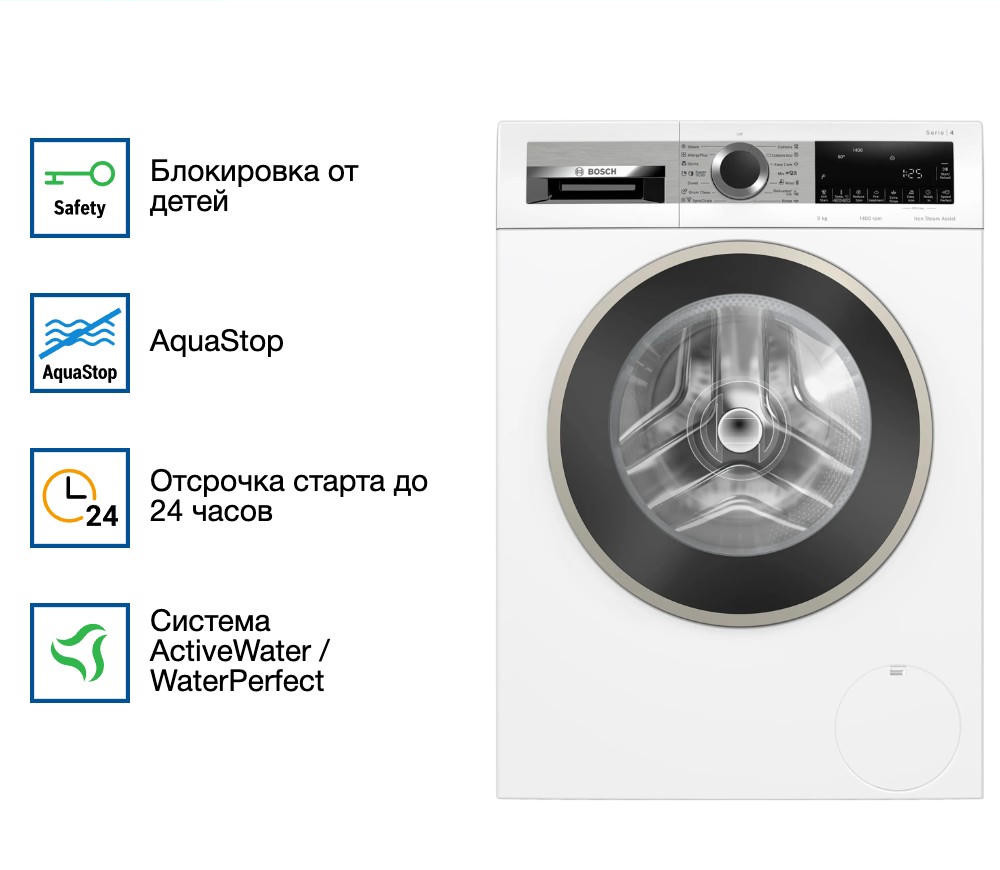 Стиральная машина Bosch WGA24400ME из серии 4 стала настоящей находкой для нашей семьи! Особенно порадовала функция SpeedPerfect — теперь стирка хлопковых вещей занимает вдвое меньше времени без ущерба для качества. Это просто спасение в будние дни, когда времени катастрофически не хватает. Очень удобна и функция дозагрузки: бывало, что забыла положить носочки или полотенце — теперь можно просто приостановить программу и добавить вещи, не перезапуская цикл с нуля. Отдельно хочу отметить программу «Антиаллергенная» — у моего ребёнка чувствительная кожа, и эта опция действительно помогает: вещи после стирки мягкие, без раздражений и остатков порошка. А ещё отложенный старт на 24 часа позволяет запускать машинку ночью по льготному тарифу — экономия ощутимая!