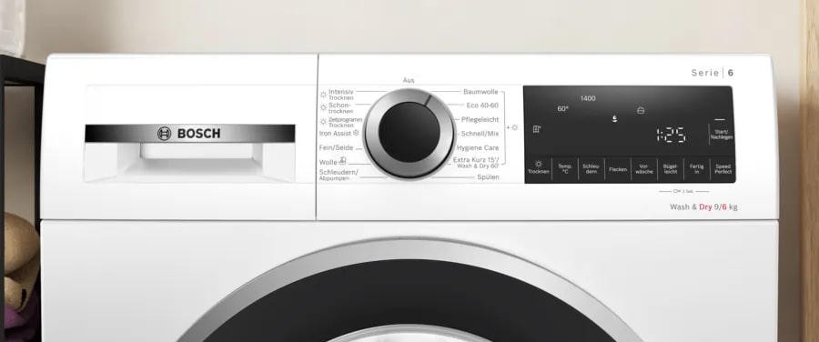 Стиральная машина Bosch WNG24441 стала настоящим спасением в моей повседневной жизни. Прежде всего, хочется отметить наличие функции сушки — это невероятно удобно, особенно в дождливую погоду или в условиях городской квартиры, где нет возможности сушить бельё на улице. Загрузка до 9 кг при стирке и 6 кг при сушке позволяет мне легко справляться даже с крупными объёмами: от постельного белья до детских вещей — всё можно обработать за один цикл. Очень нравится система ActiveWater (или WaterPerfect): она автоматически подбирает количество воды в зависимости от загрузки и типа ткани, что не только экономит ресурсы, но и заботится о ткани. Управление интуитивно понятное — комбинация поворотного переключателя и сенсорных кнопок делает процесс настройки программы быстрым и приятным. А ещё многофункциональный LED-дисплей чётко показывает время до окончания стирки, что помогает планировать день без лишнего напряжения.